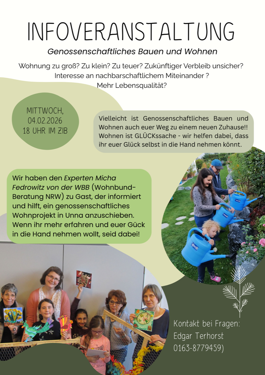 Jeden 1. Mittwoch im Monat, 18 bis ca. 19:00 Uhr im zib (Zentrum für Information und Bildung, Lindenplatz 1, 59423 Unna), Raum 1.01